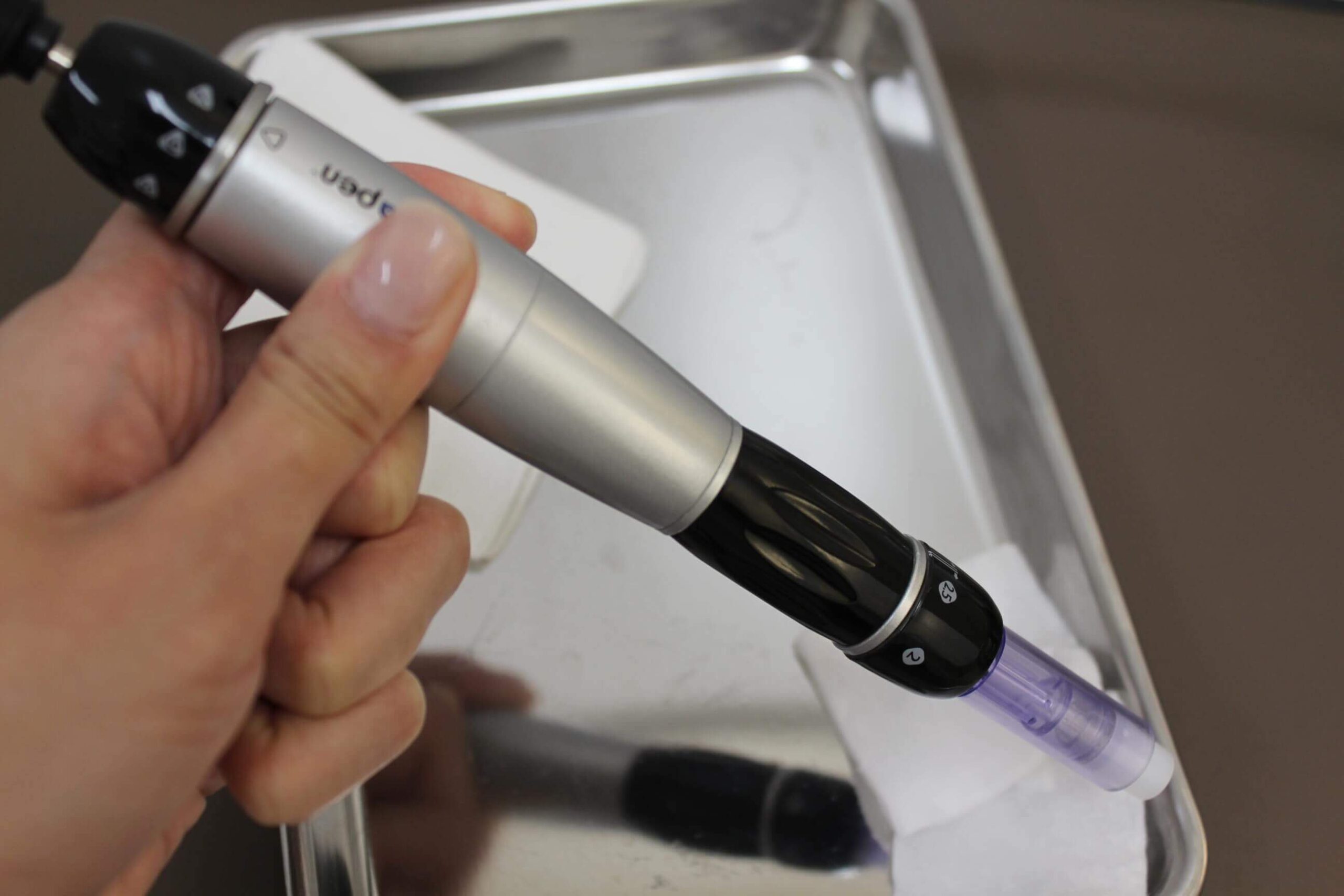 【にきび跡治療】皮下の剥離を容易にする機器を導入します。